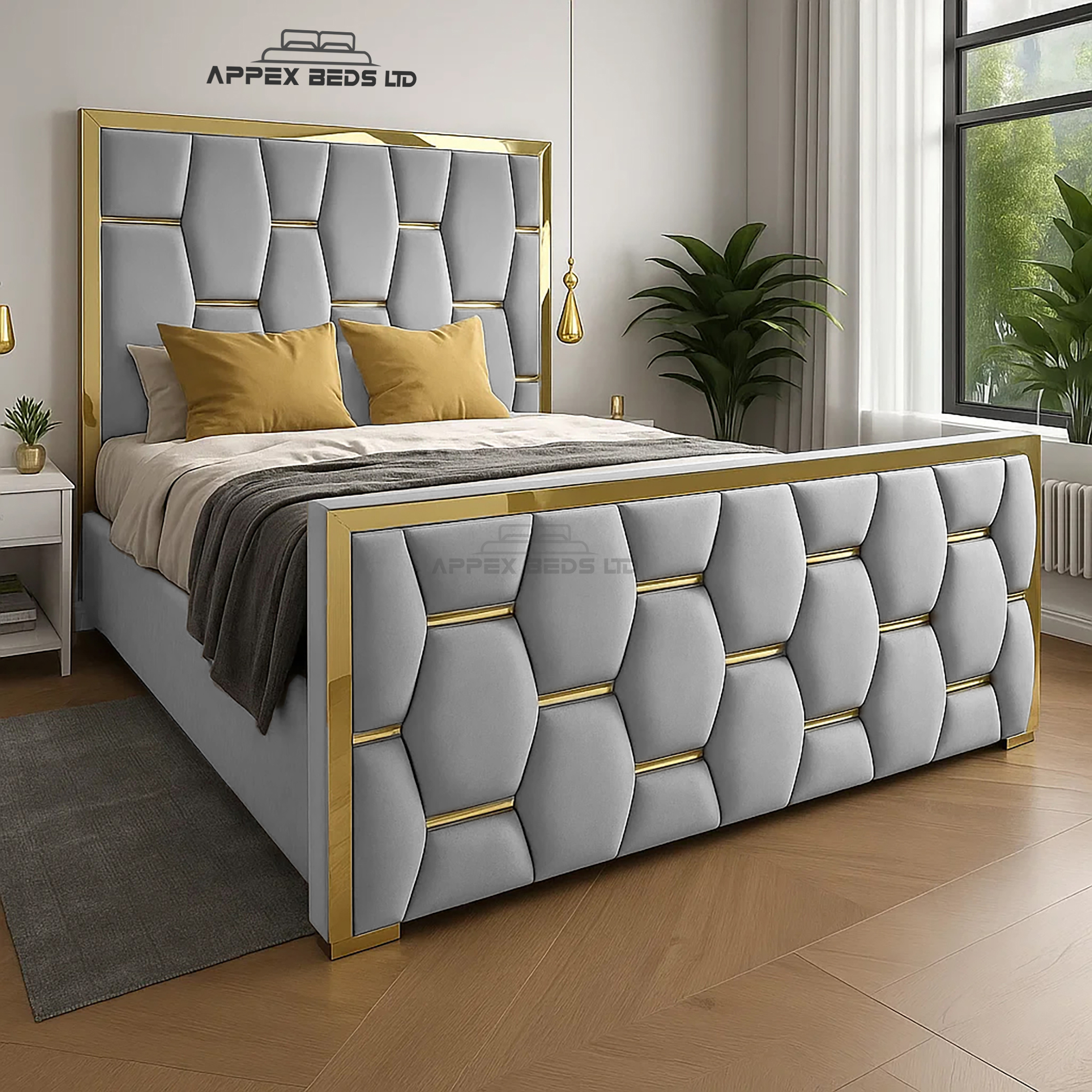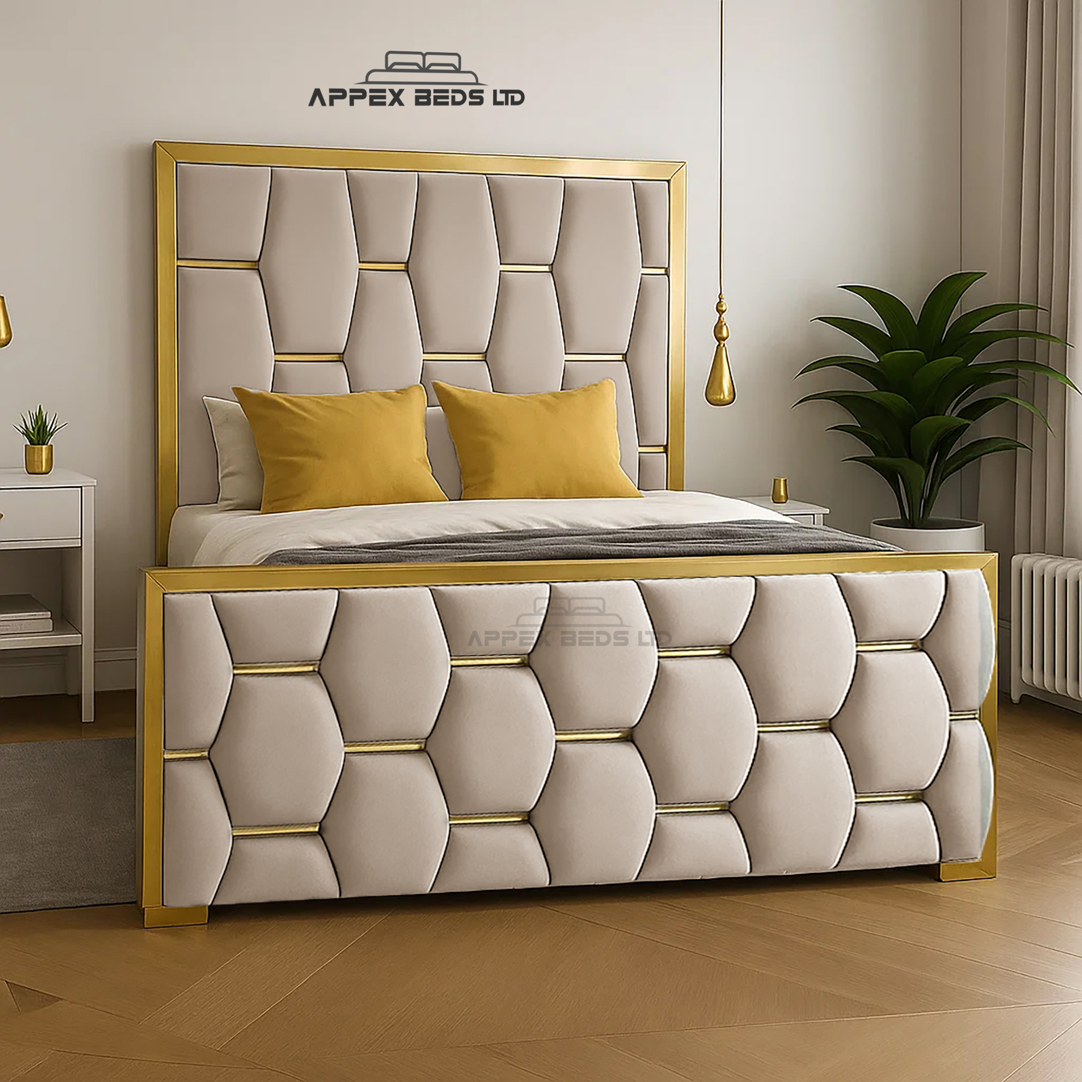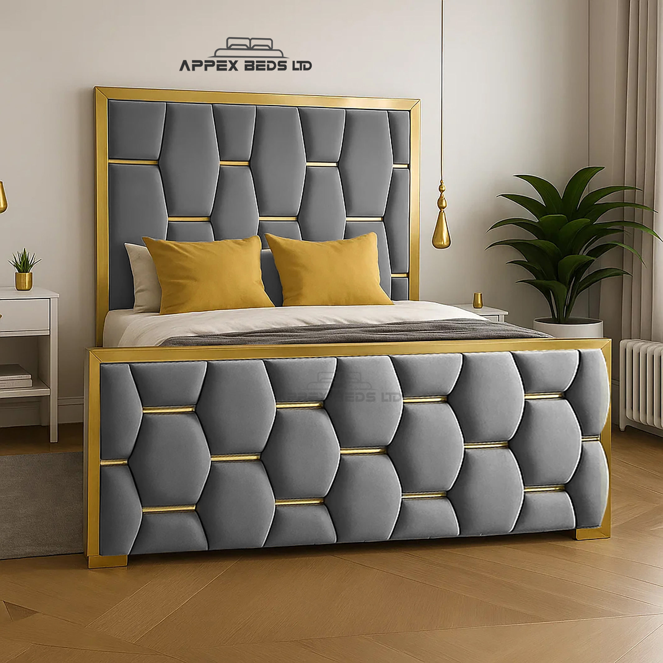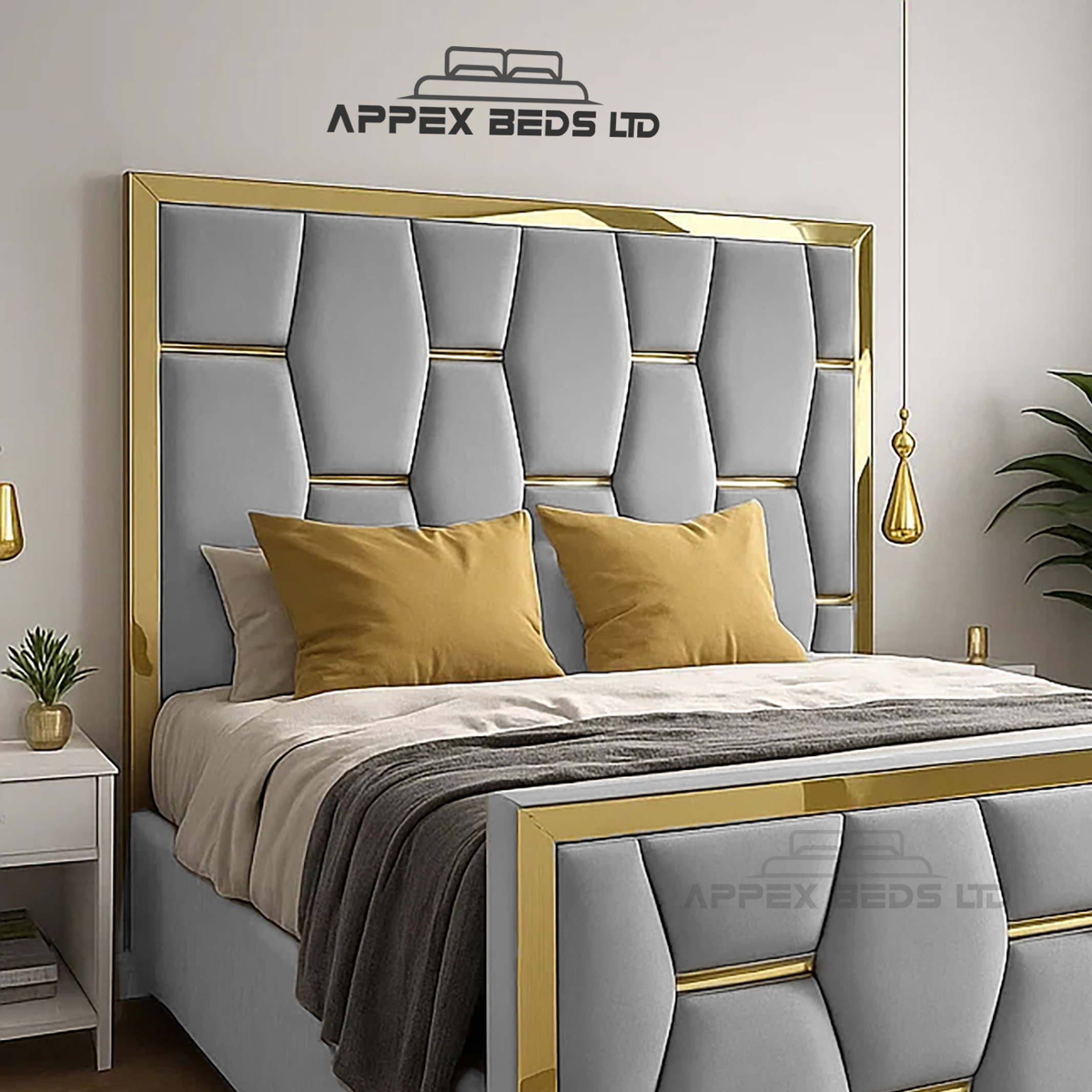 Experience versatile luxury with the Amari Panel Bed Frame, available with an optional gas lift ottoman storage base for added bedroom convenience.