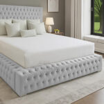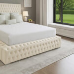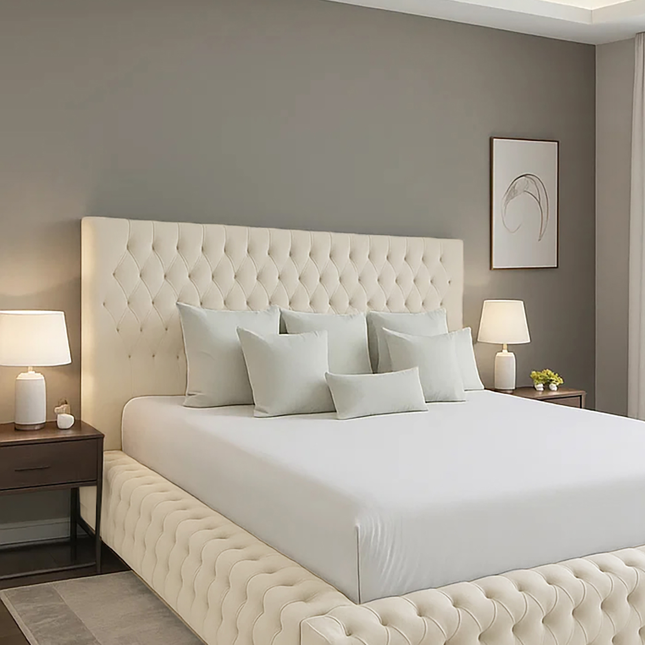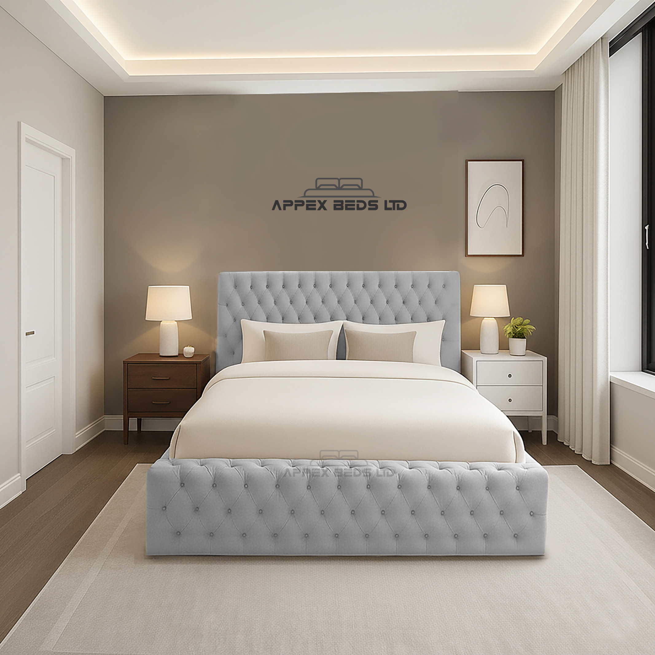 Experience versatile luxury with the Amari Panel Bed Frame, available with an optional gas lift ottoman storage base for added bedroom convenience.
